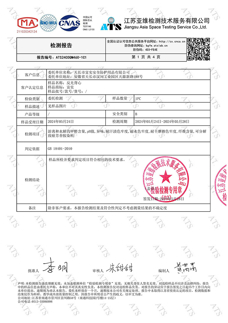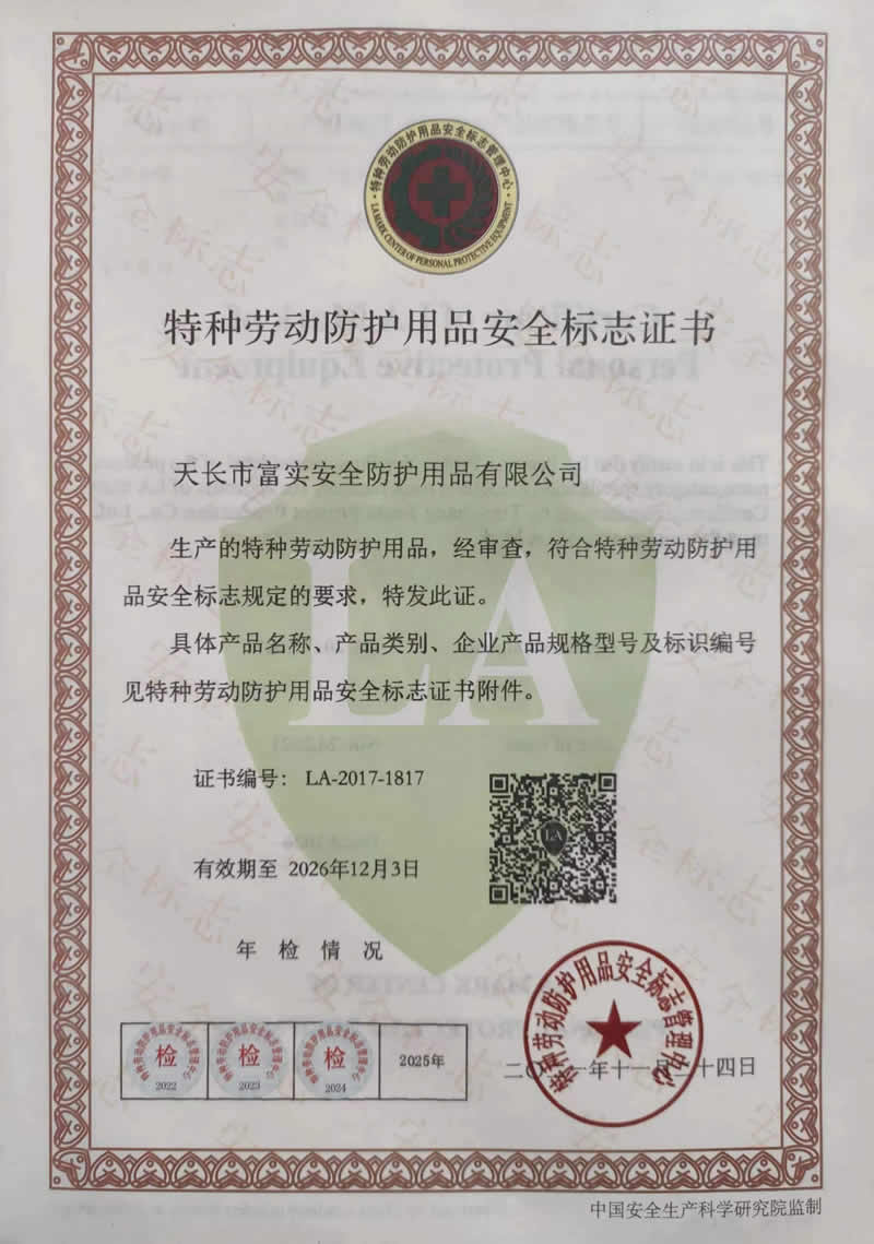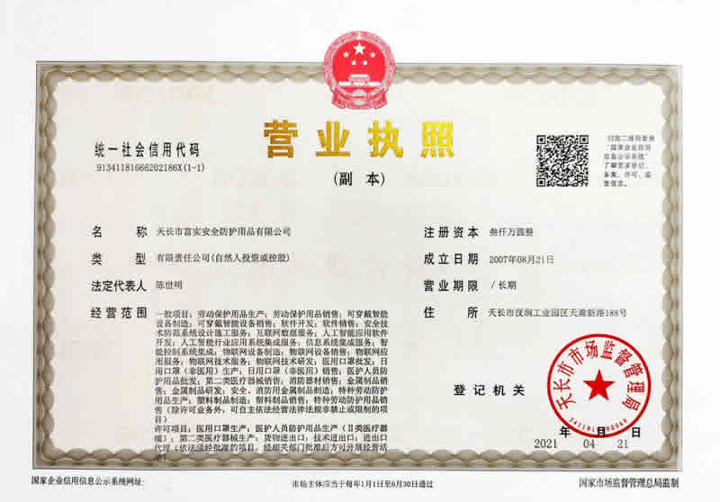 生產(chǎn)企業(yè):天長市富實安全防護用品有限公司